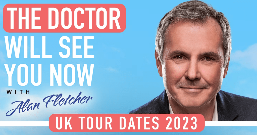 When I heard that Alan Fletcher who plays Dr Karl was touring his “The Doctor Will See You Now” show throughout the UK in June and July of 2023, I was intrigued. An opportunity to see Alan perform, sing and chat about Dr Karl and “Neighbours”.
