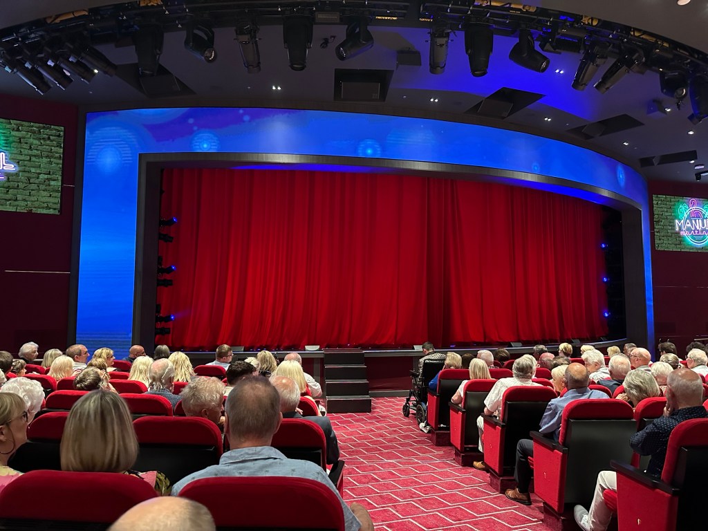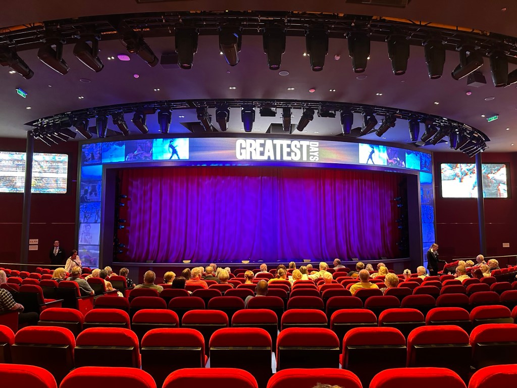 This was a theatre show in “The Headliners” theatre. An impressive theatre space, with good use of technology to enhance the audience experience. Screens surrounding the stage and massive LED screens to provide stage sets. Many theatres will be jealous of this set up and the theatres capability to adapt with staging that can raise as required.