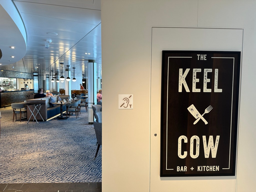 The Keel and Cow restaurant is a steak restaurant on deck 8 in the atrium area. Famed for its Prime Minister burger.