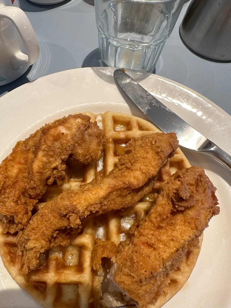 The menu changes throughout the day and the lunch menu offered lovely prawn po-boy sandwiches. Also open for breakfast/brunch and evenings.