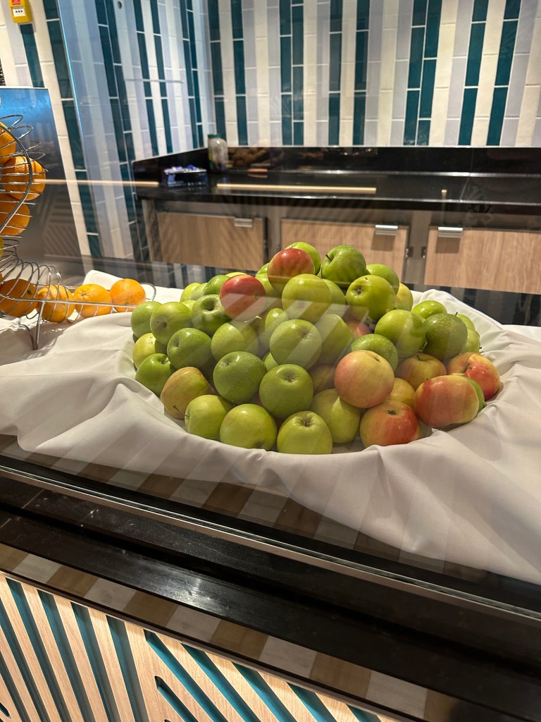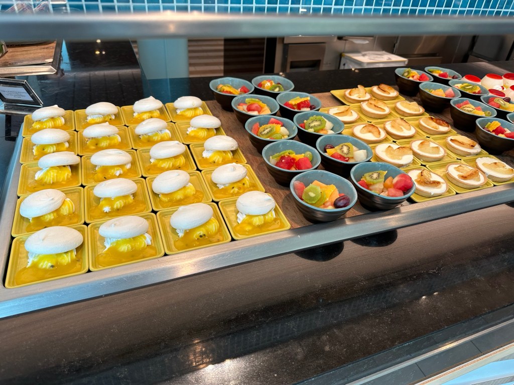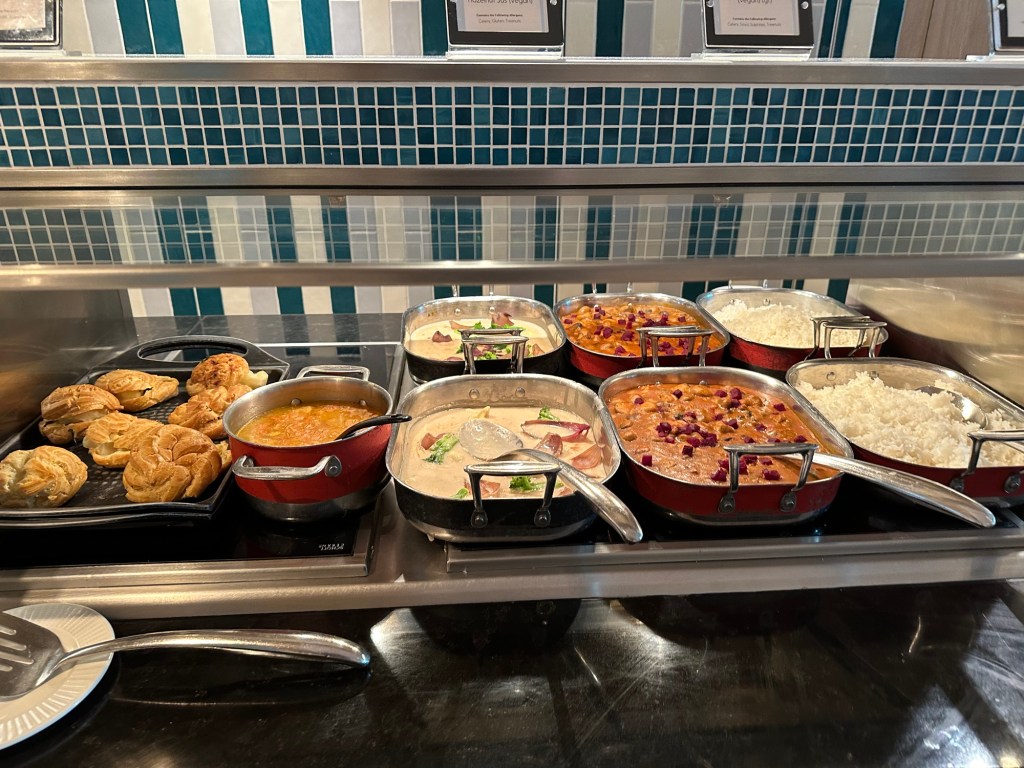 During our first evening, we did try the late night buffet. A selection of desserts, rolls and hot food like Indian. While busy, we did get a wide choice of foods to try. I had some rice, potatoes and bread rolls.