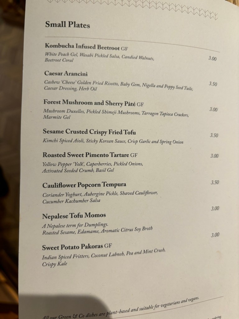 Portion wise, starters are generally small and mains of a polite average size. Though you can always order more or go to another eatery. Desserts are quite a decent size but do tend to be a lot of similar set jellied puddings.