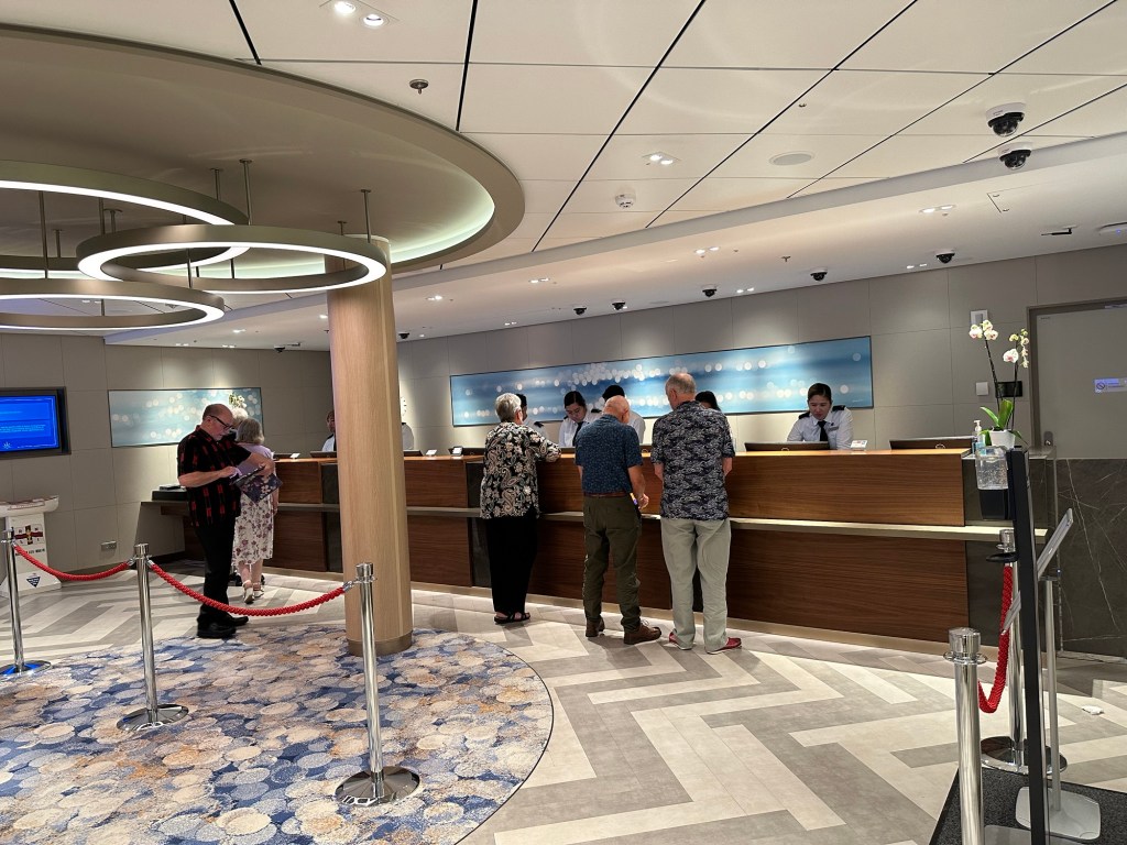 Guest services was always normally busy with a small queue but they did appear efficient and fast. You could then make any arrangements such as adding drink or internet packages or perhaps organising flowers etc. The equivalent of a hotel reception really. We didn’t use them much and you can ring them as well.