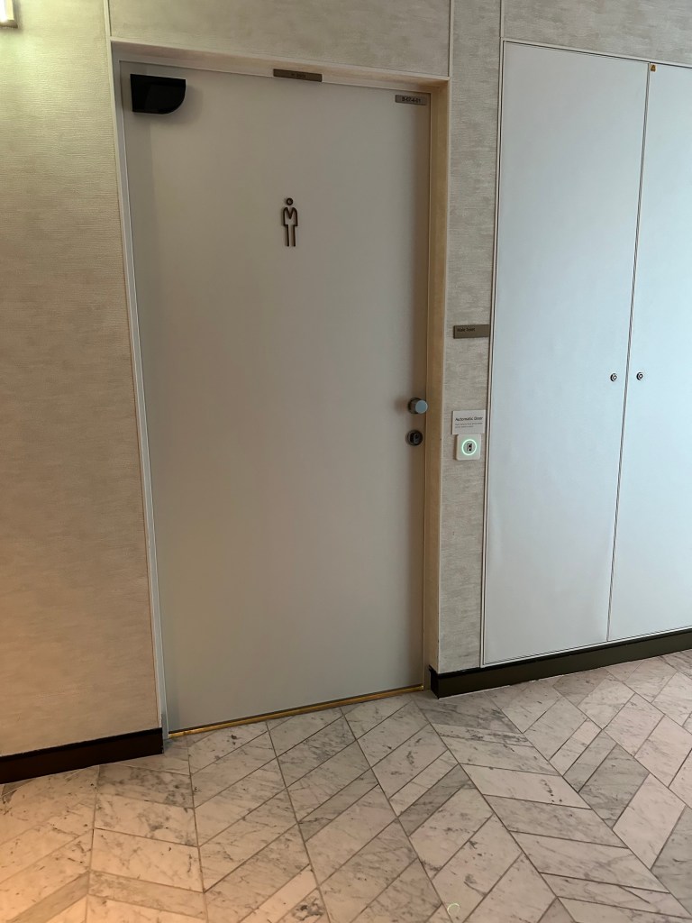 If you are using a single toilet, such as baby changing, don’t forget to lock the door. You need to wave again inside for the door light to go red and lock.