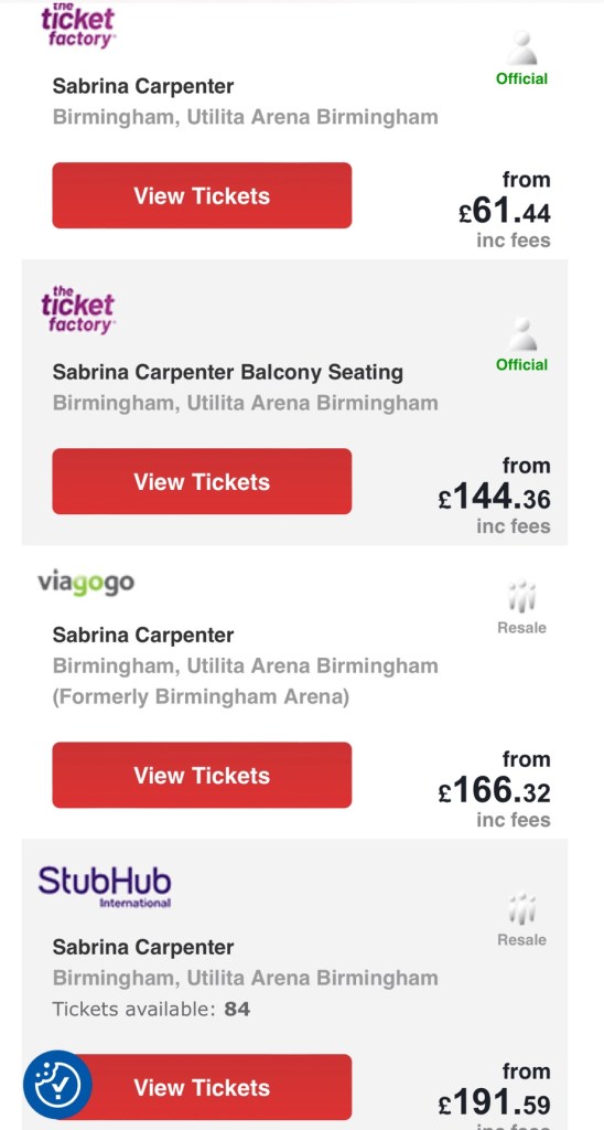 My daughter was hoping to get Sabrina Carpenter tickets that officially went on sale today (26-July). She previously tried two pre-sales unsuccessfully this week. The venue selling the tickets was then sold out some 45 mins after going on sale.