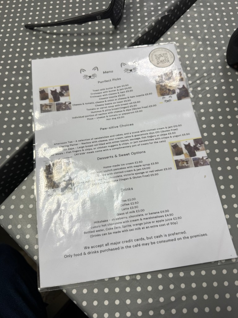 For anyone wishing to spend time with the cats and to buy a drink while visiting, you will enjoy your visit and the setup is ideal. Avoid the food in all honesty as you will get much better from Greggs or another equivalent.