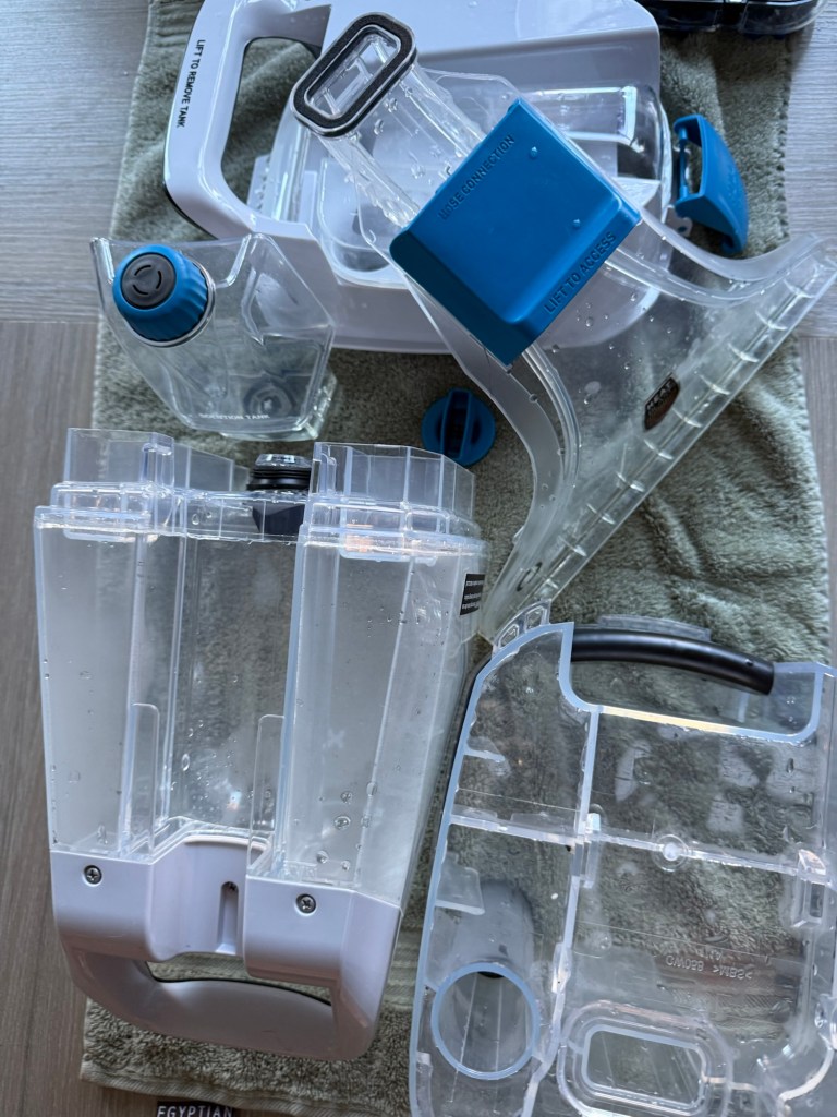 Learnings from using the machine include checking that water is being sucked up on initial operating. If it stops, or is not working, just align all the tanks that you set up and you should then be good to go. Then when cleaning the machine, tanks are easy to wash out and leave to dry once you become accustomed with best ways to clean out hair and left over particles with the supplied cleaning attachment. The tray underneath the machine which holds the brushes has a couple of buttons to push release and the front facing transparent heat blast section (the bit that sucks up the water) pulls off the machine. This section is slightly more tricky to clean and after use had quite a bit of dirt and hair caught. However, once all cleaned, I left all items out to dry. Lastly, this VAX model is fairly light but a little awkward to carry around the house when going up and down floors. It is likely wise to remove the dirty water and main water tank to make it easier.