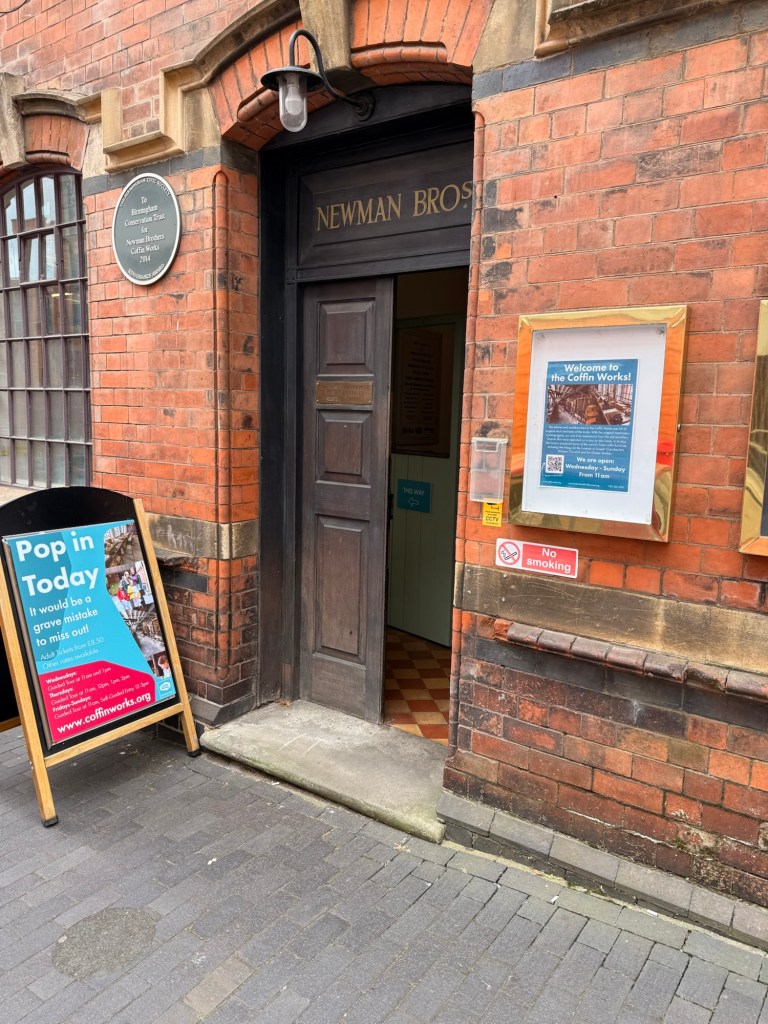 While in Birmingham with some free time, I stumbled upon a hidden gem: the Newman Brothers’ Coffin Works. Located near the Jewellery Quarter, this Victorian warehouse premises was once used to manufacture coffin furniture. It’s centrally situated, just a short walk from the city centre and shopping area.