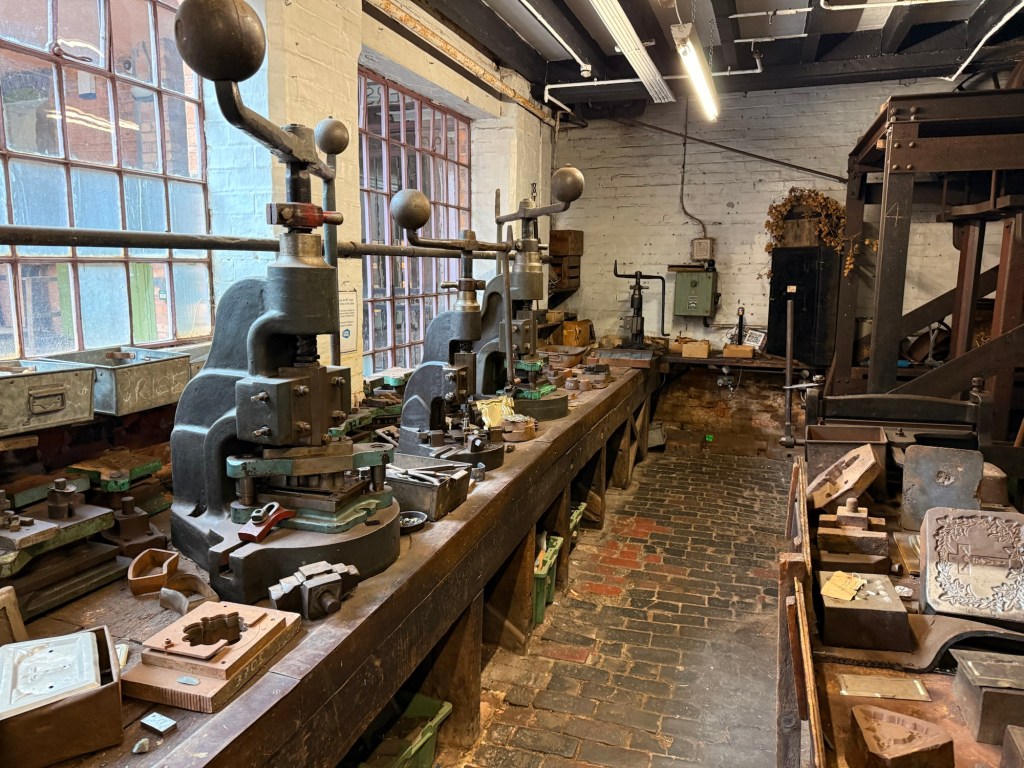 Tools, machinery, and loads of stock are available to view, and the site would have been considered old-fashioned even in the nineties when it was last in operation. It’s a business that didn’t adapt to the changes of time and captures the working life of its Birmingham staff from Victorian to mid-20th century. The restoration restored many of the buildings’ original features, including the machinery in the print room.
