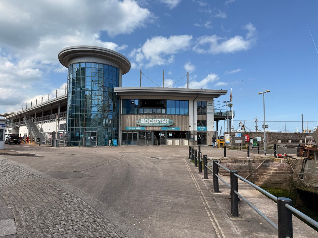 On our first night in Brixham, we ate at the “Rockfish” fish and chips which has a restaurant and take-out. While we used the take-out, you can still eat in and look out to the harbour. My family had traditional fish and chips, while I had pork sausage and chips. Lovely, friendly service, clean and good food.