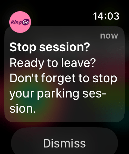 The good news is that when I returned to the car parks, I did receive notifications on my Apple Watch as the location triggered an alert to stop paying. However, I nearly made a mistake and forgot to stop the charging as I was thinking the system already knew I was leaving. It is important that you do confirm you wish to “stop” the car parking charges.