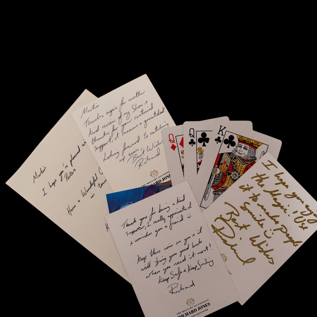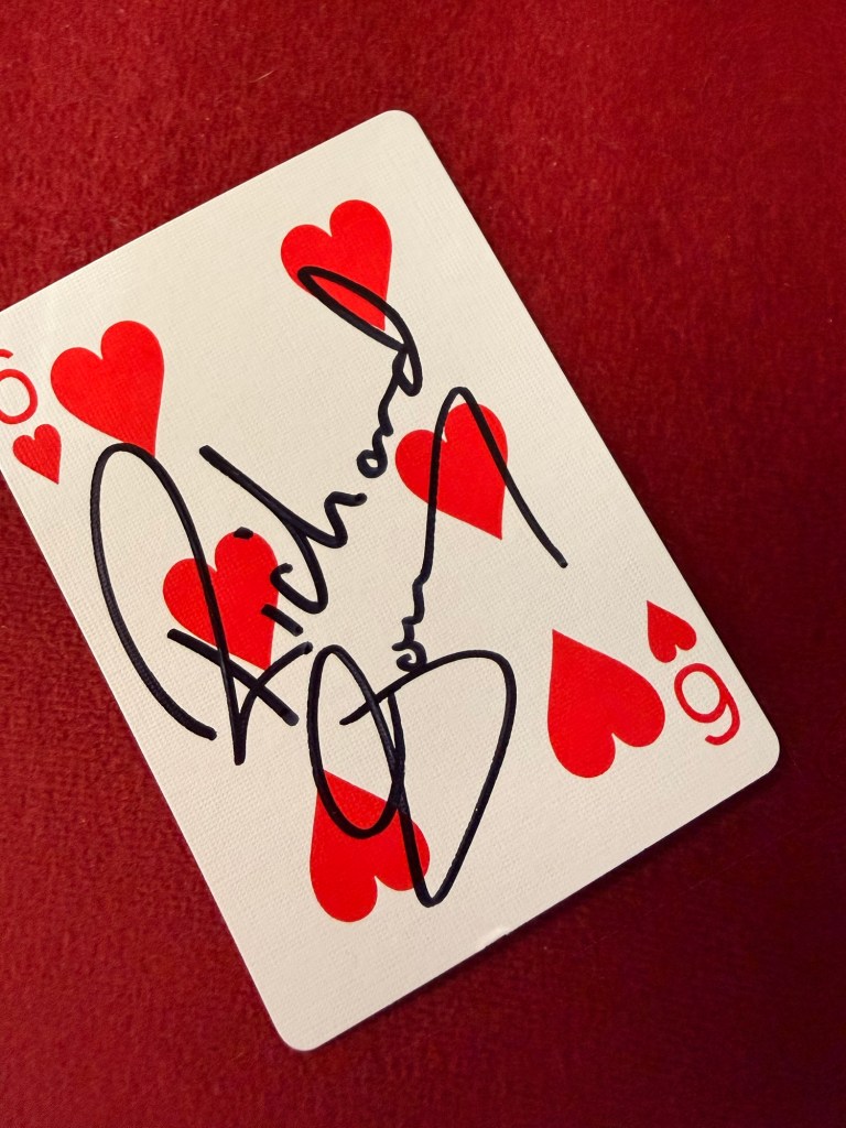 Though I have collected signed cards for about four years, my signed playing card by Richard was only gained last year. I realised he was missing from the collection and asked him to sign it. When getting him to do this for me, he admitted that he wished he had started such a signed playing card collection himself.