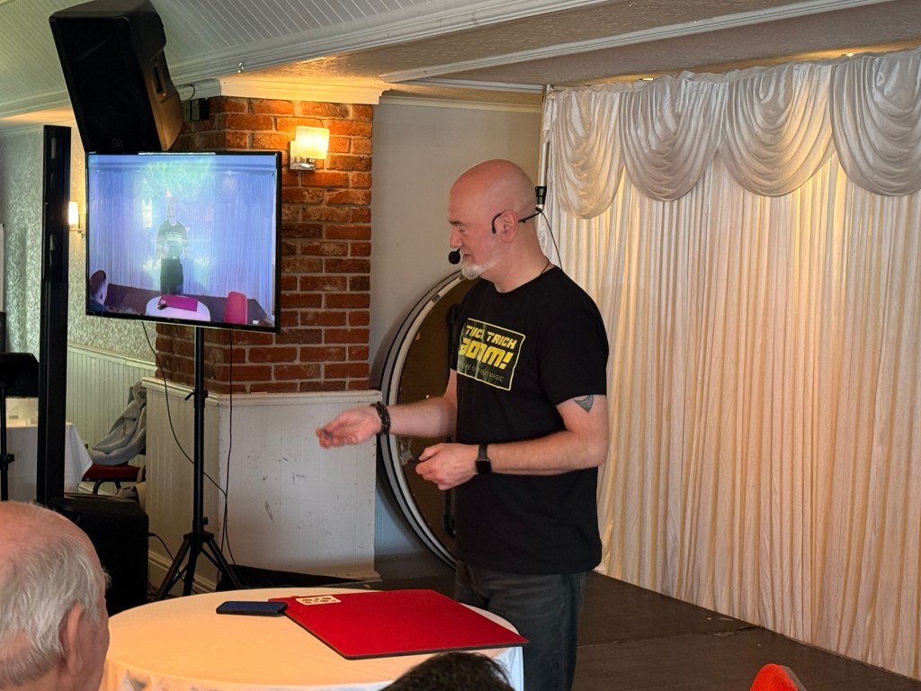 Tom, a magician from the US, gave a very special lecture on card magic. It was a treat for those who love the intricacies of card set pieces. I sat there knowing some magicians who weren’t present who would have loved to have seen it. Tom gave clear and good instruction, and two audience members who witnessed and helped with the action close up were also on stage.