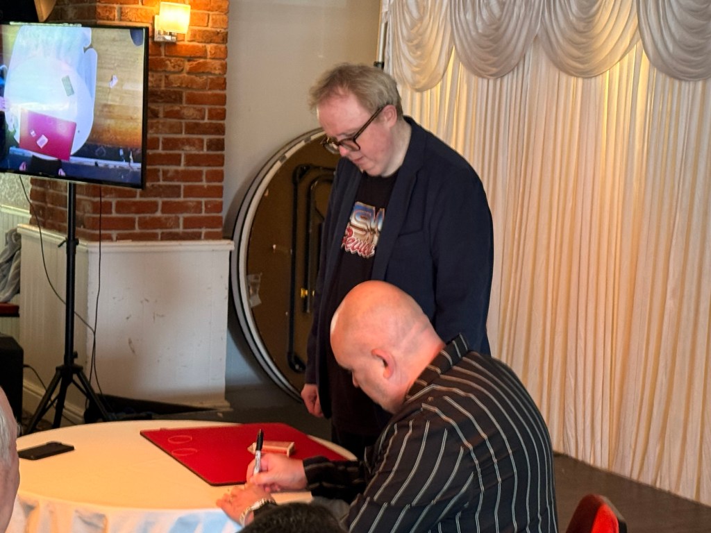 The welcome was impressive. Those waiting in the bar area before the convention opened were greeted, given wristbands, and their tickets scanned. This proactive approach minimised queues when the doors opened. Kerry greeted us, and we were ready to go straight through into the event at 09:30. Amazing.