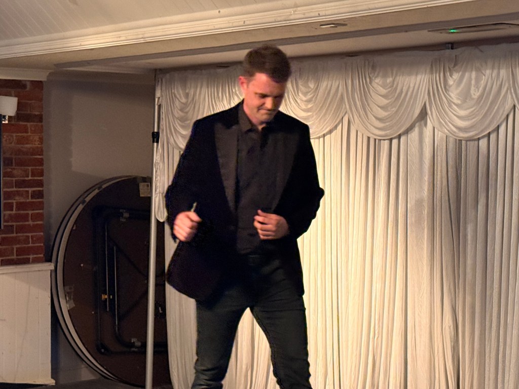Once the stage was ready with some help from John Archer, we quickly discovered Sam was presenting a surprise manipulation act. As well as stage illusions, I do love manipulation. Classic old fashion and skilled magic. While a short set, it was very enjoyable.