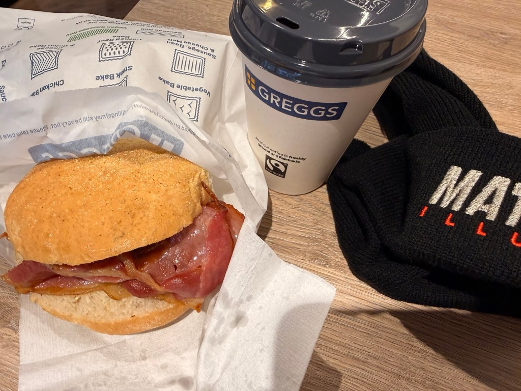 Greggs is Greggs, and the food quality is consistent. You get what you expect, and the value is pretty good. The bacon roll had a generous amount of bacon and a nice, soft bun. The coffee was hot, so I’d definitely come again as a Sunday treat. The app is a bonus, offering rewards. I understand you might also be entitled to special offers occasionally as an app user so I will keep an eye on that.
