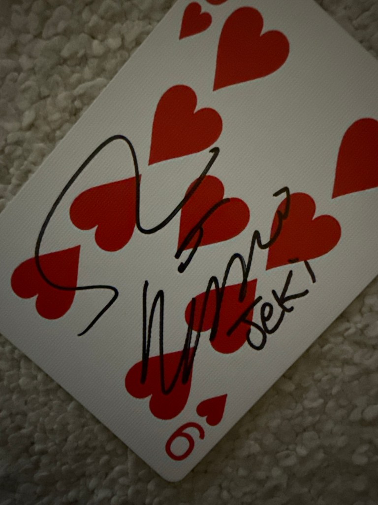 I was able to get a signed playing card from Jeki for my card collection, which is a lovely memory and keepsake. It was a very memorable lecture from a talented magician. Jeki will be performing more dates until mid-November before other international dates.