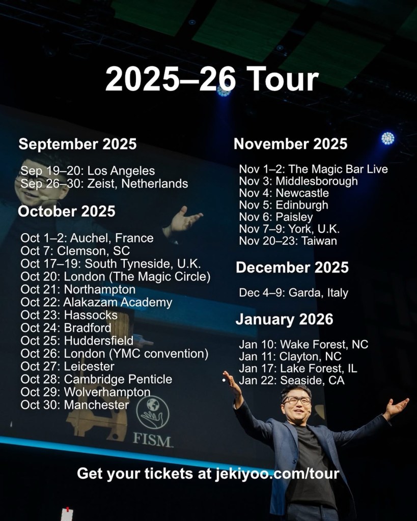 Jeki Yoo is a renowned magician, both as a performer and a creator. Currently, he’s touring UK magic clubs, delivering lectures and, in some cases, performing live shows. His wife, Ellie, is also touring with him. Together, they have their own solo acts and a double act where they perform quick change. They gained fame for their performances on Britain’s Got Talent and America’s Got Talent.