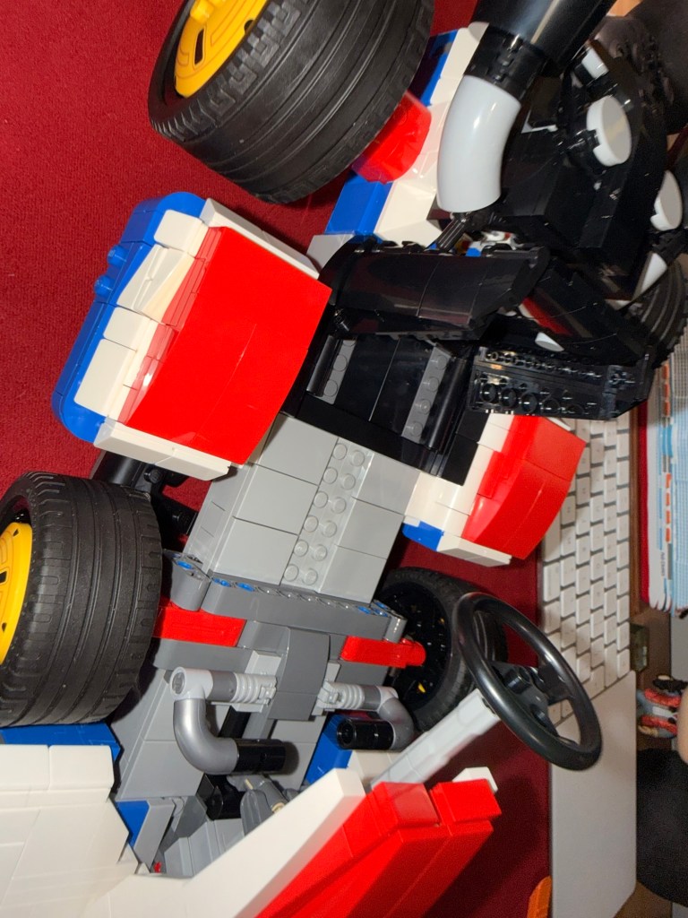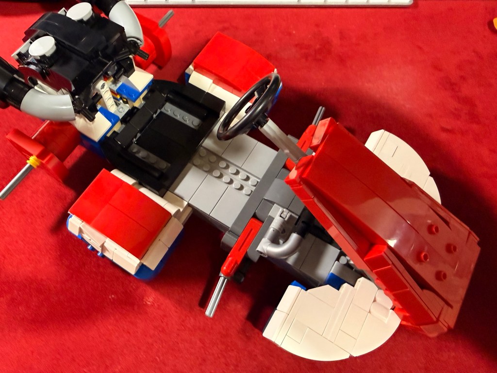 After day 2 and finishing packet 7, the kart was beginning to take a recognisable form with the exhaust and steering with colourful bodywork. Some of the work was more intricate and several parts for the bonnet/front kart section being built and then joined together before connecting to the kart body.