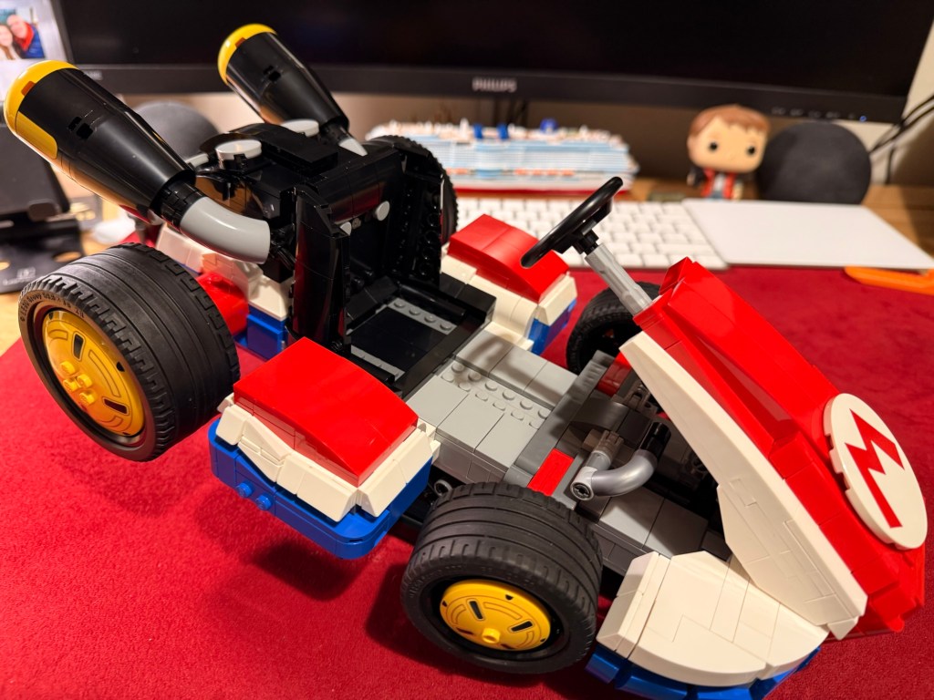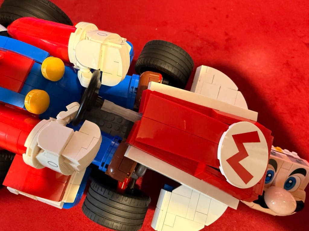 Day 3 building with packets 8 and 9 resulted in the completed kart with wheels and body trims. The kart was looking good and a decent size. The next stage was to work on Mario.