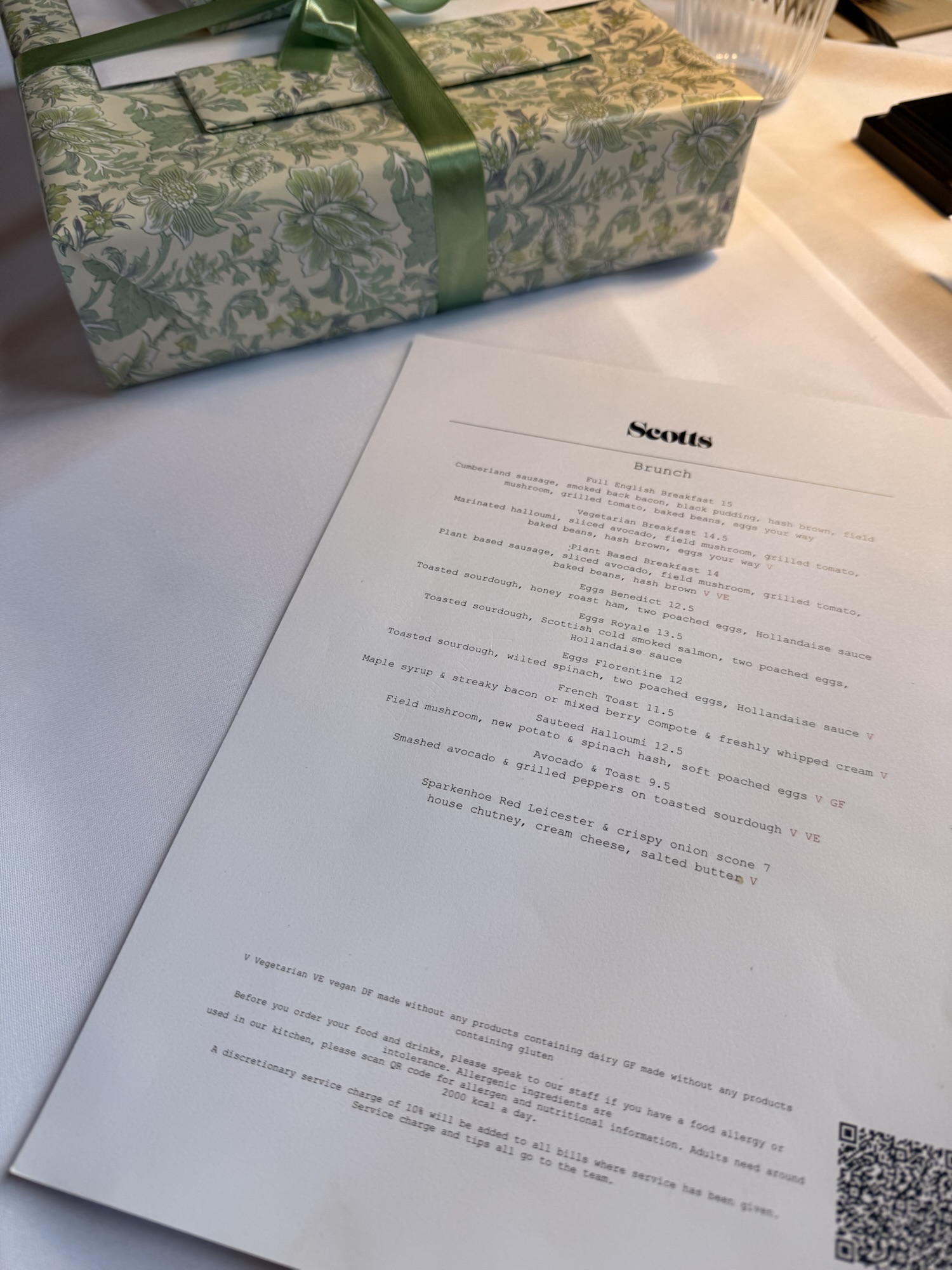 We visited Scotts restaurant to celebrate a birthday and ordered from the brunch menu. We had full English breakfasts, avocado toast, eggs royale and some French bread servings.