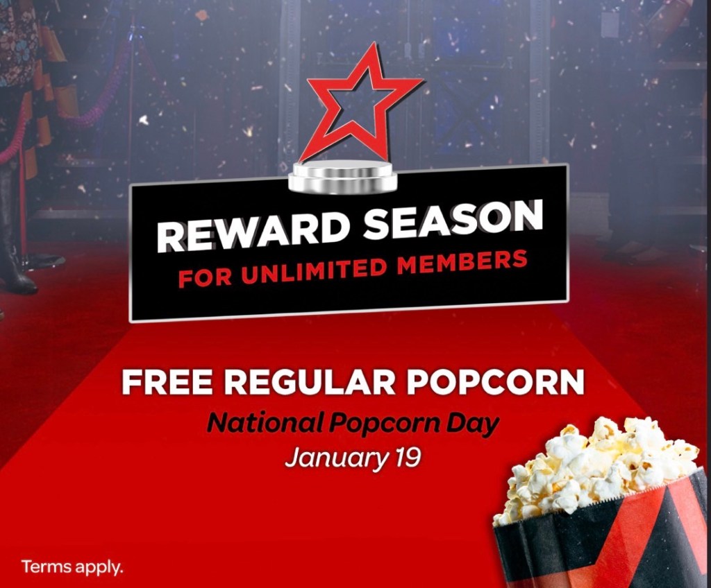 I will be getting my free popcorn today (January 19th) and I’m looking forward to hearing about other events soon for 2026. In the past they’ve also organised competitions, offered free cinema seats to bring a guest, provided free Baskin Robbins ice cream, free Icee and even offered free 4DX/iMax viewing (no additional fees). I’ll keep you updated and would expect a similar approach.