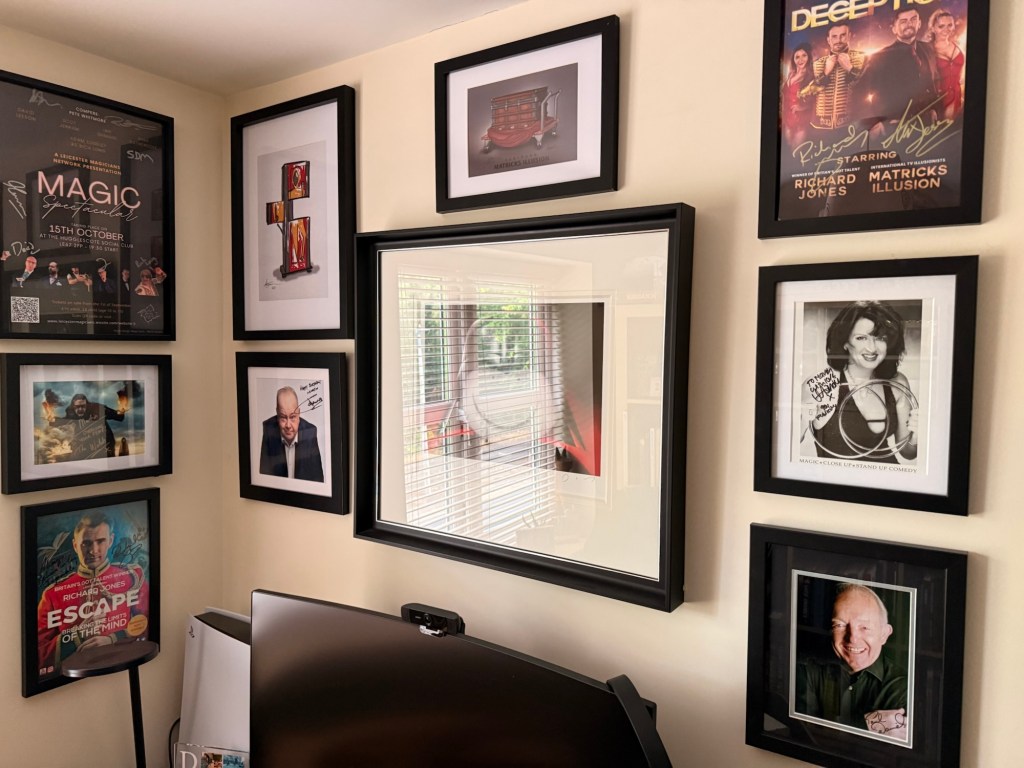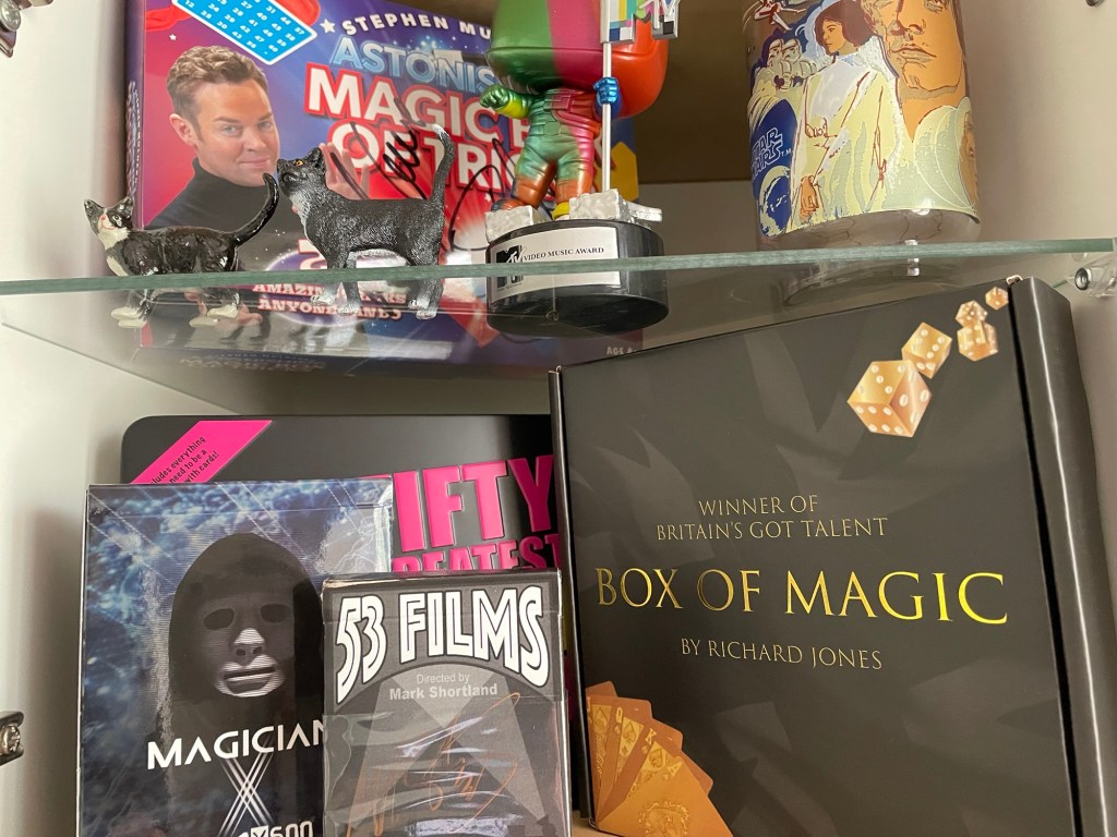 My focus has gradually shifted towards magic. This has led to a growing collection of signed items and memorabilia that feels much more personal and meaningful. Many of these pieces are now on display, including signed posters, playing cards, books and more. My playing card collection alone boasts over 100 signed cards from magicians.