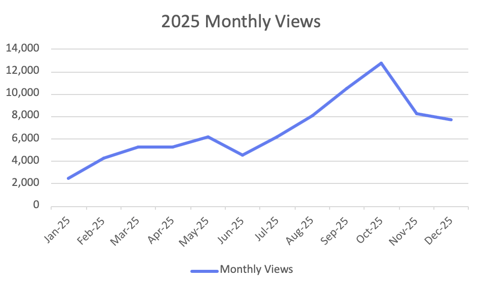 • Site launched in October 2023 and achieved its first 10k+ views in September 2025