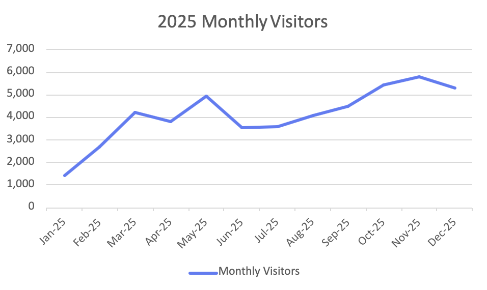 • Visitor traffic reached a new milestone in November 2025 with 5,800 visitors